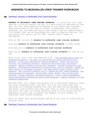 Free PDF mcdonalds quality workbook answer Kobo Library Genesis